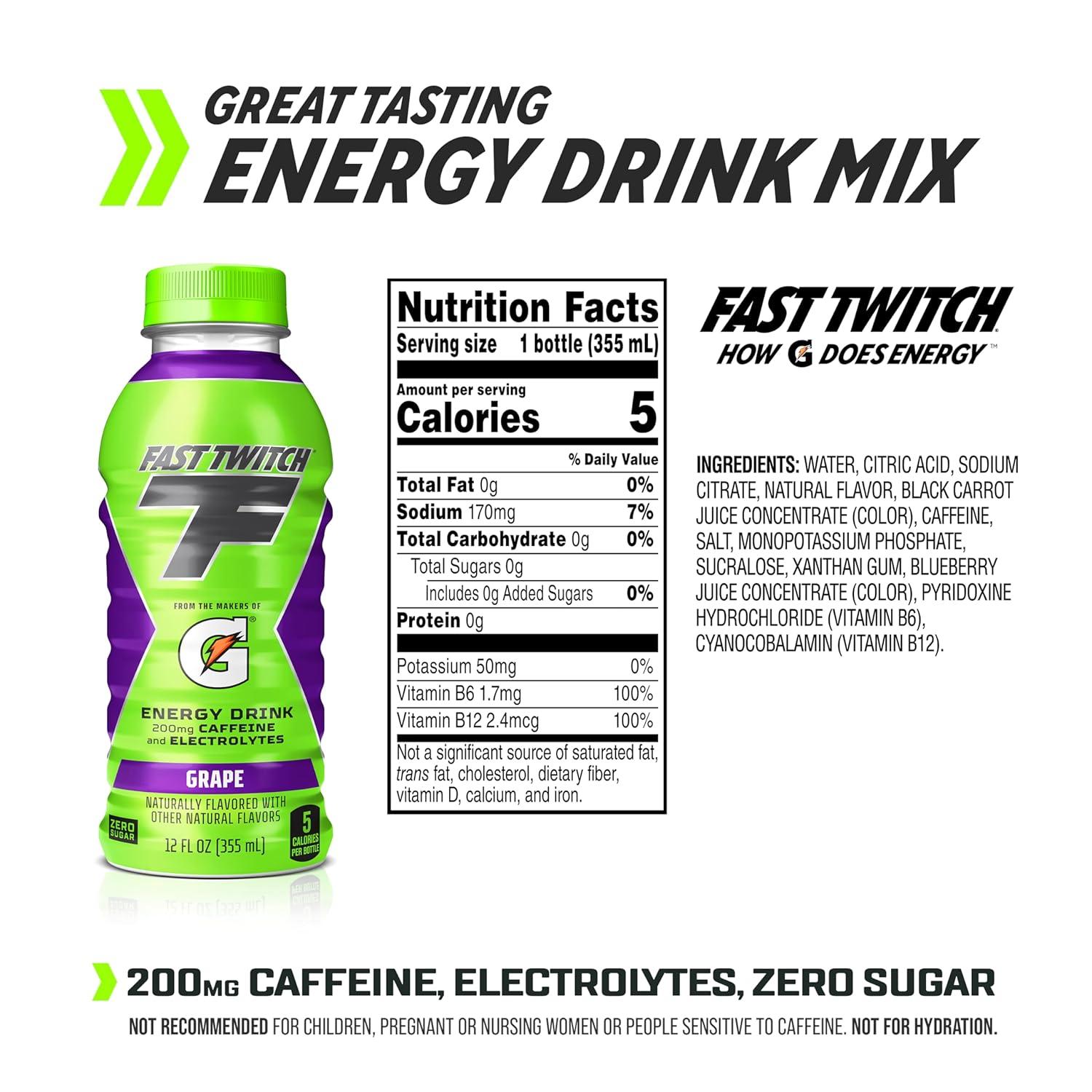Fast Twitch Energy Drink from the Makers of Gatorade, Grape, 12 Fl Oz (Pack of 12)