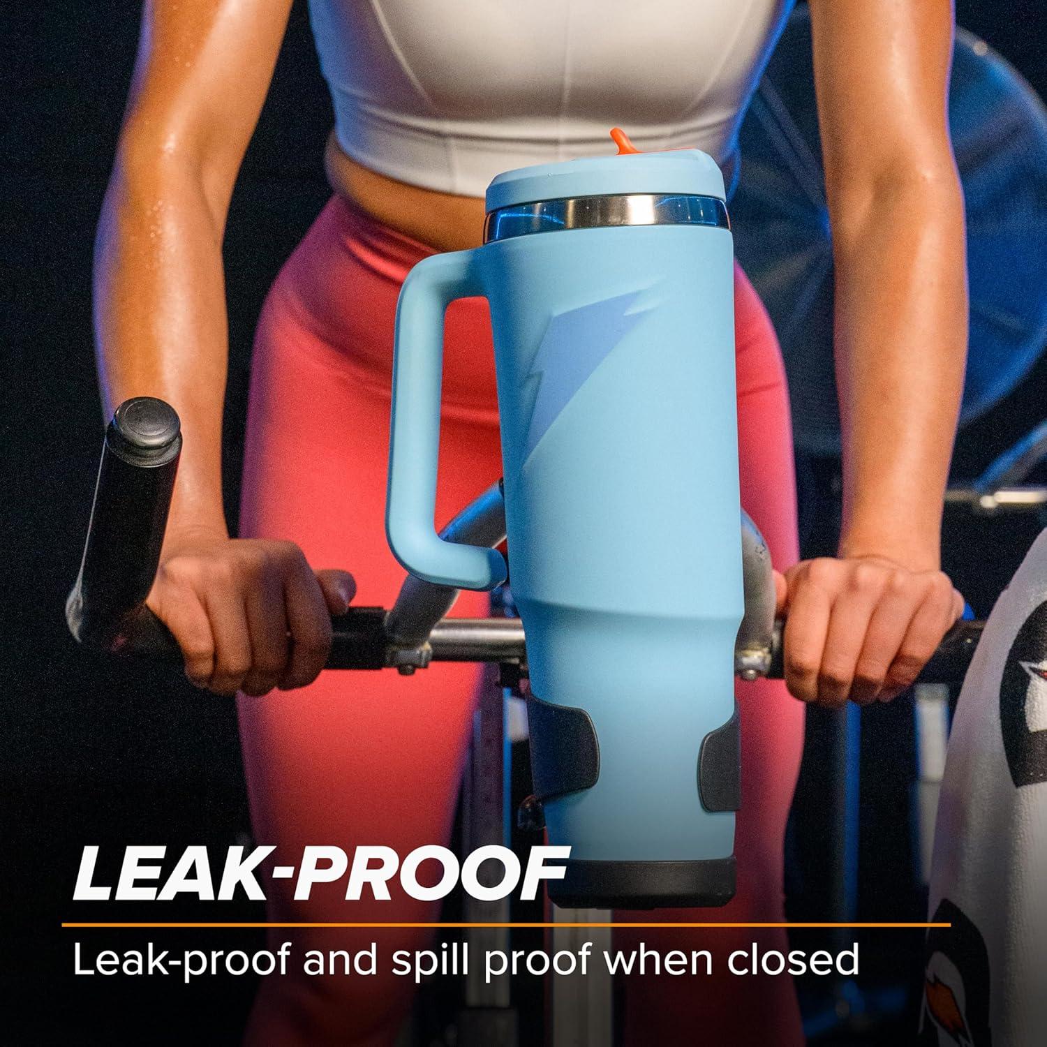 The 36oz Crossover Stainless Steel Tumbler makes all-day hydration easy, with a fill port for quick refills, leak-proof straw cap (when closed) and open-bottom handle. The Gatorade Crossover Stainless Steel tumbler is dent resistant, BPA-Free, and top rack dishwasher safe. Enjoy an easy flow straw cap for easy sipping, a fill port to refill easily without removing the cap, and an open bottom handle that slides into bags, cupholders, and back pockets. Double-walled insulation keeps the outside of the bottle dry and drinks cold for 24+ hours.