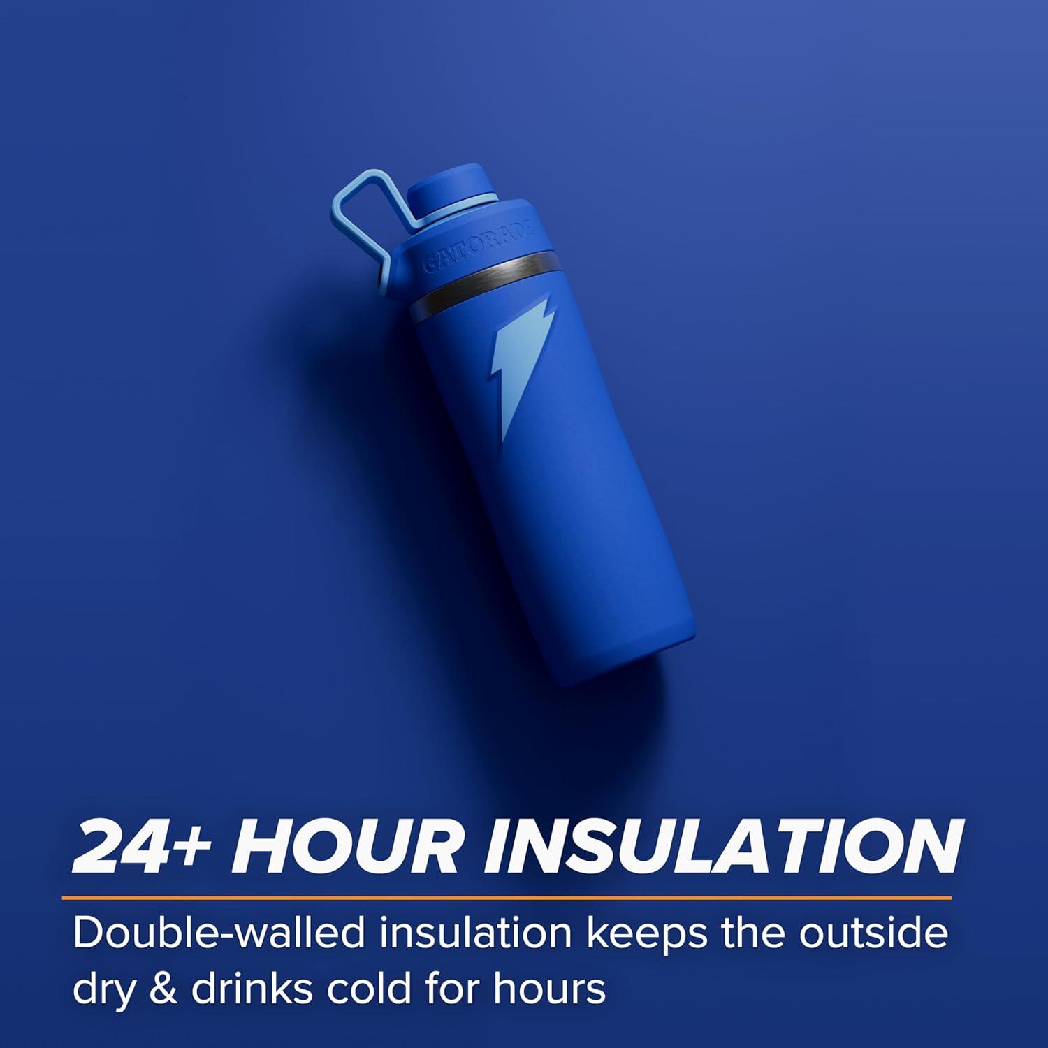 Gatorade Stainless Steel Overtime with 24+ Hour insulation: Double-walled insulation keeps the outside dry & drinks cold for hours